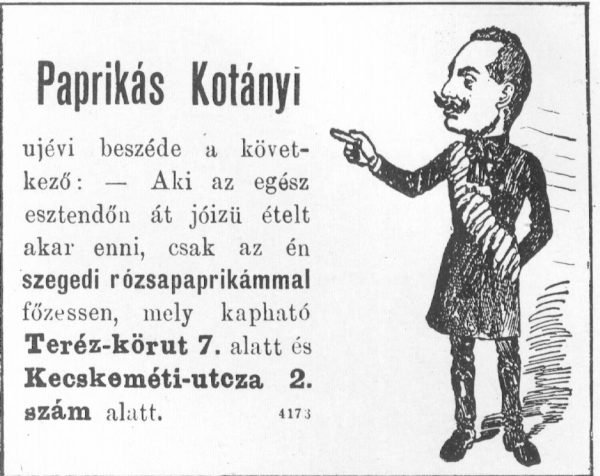 Paprikás Kotányi egyik hirdetése, 1902. Forrás: Wikimedia Commons