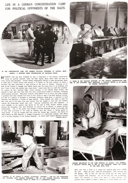 A németek az első koncentrációs tábort Dachau-ban hozták létre már 1933 márciusában azzal a céllal, hogy a politikai ellenfeleket megfélemlítsék, elszigeteljék. Az első zsidó foglyok – vallási és faji okok miatt – ide csak öt évvel később, a kristályéjszakát követően kerültek. A goebbels-i sajtógépezet a dachau-i koncentrációs tábort egy kulturált átnevelő táborként jelenítette meg az újságok hasábjain. A náci vezetés igyekezete, hogy eltitkolja a lágerek kegyetlenségeit, olyannyira sikeres volt, hogy egyes híradásokat a korabeli brit sajtó is szó szerint átvett. A német hírközlés a ’30-as évek végéig az orránál fogva vezette a nyugati sajtót a koncentrációs táborokat illetően, de ezt követően a lapok fokozatosan egyre hitelesebben tájékoztatták a közvéleményt a zsidó vagyonok lefoglalásáról, a zsinagógák felgyújtásáról és a zsidó emberek ellen elkövetett náci erőszakról.