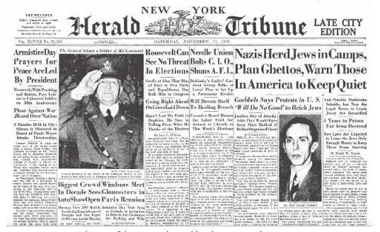 Náci tervek a zsidóság gettósítására a New York Herald Tribune címlapján (1938. november 12.)