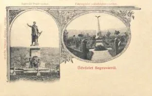 A segesvári Petőfi szobor és a fehéregyházi emlékmű 1904-ben. Forrás: kepeslapok.wordpress.com
