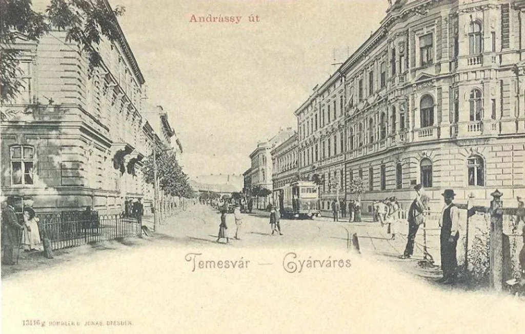 A temesvári Andrássy út 1900-ban. Forrás: kepeslapok.wordpress.com