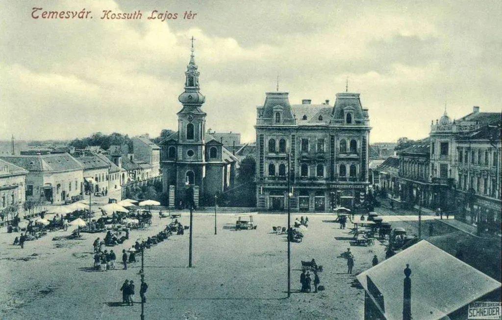 A temesvári Kossuth Lajos tér piaccal 1912-ben. Forrás: kepeslapok.wordpress.com