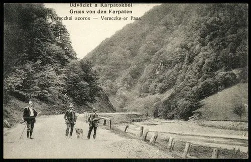 Vadászok a Vereckei-szorosban egy 1912-es képeslapon. Forrás: kepeslapok.wordpress.com